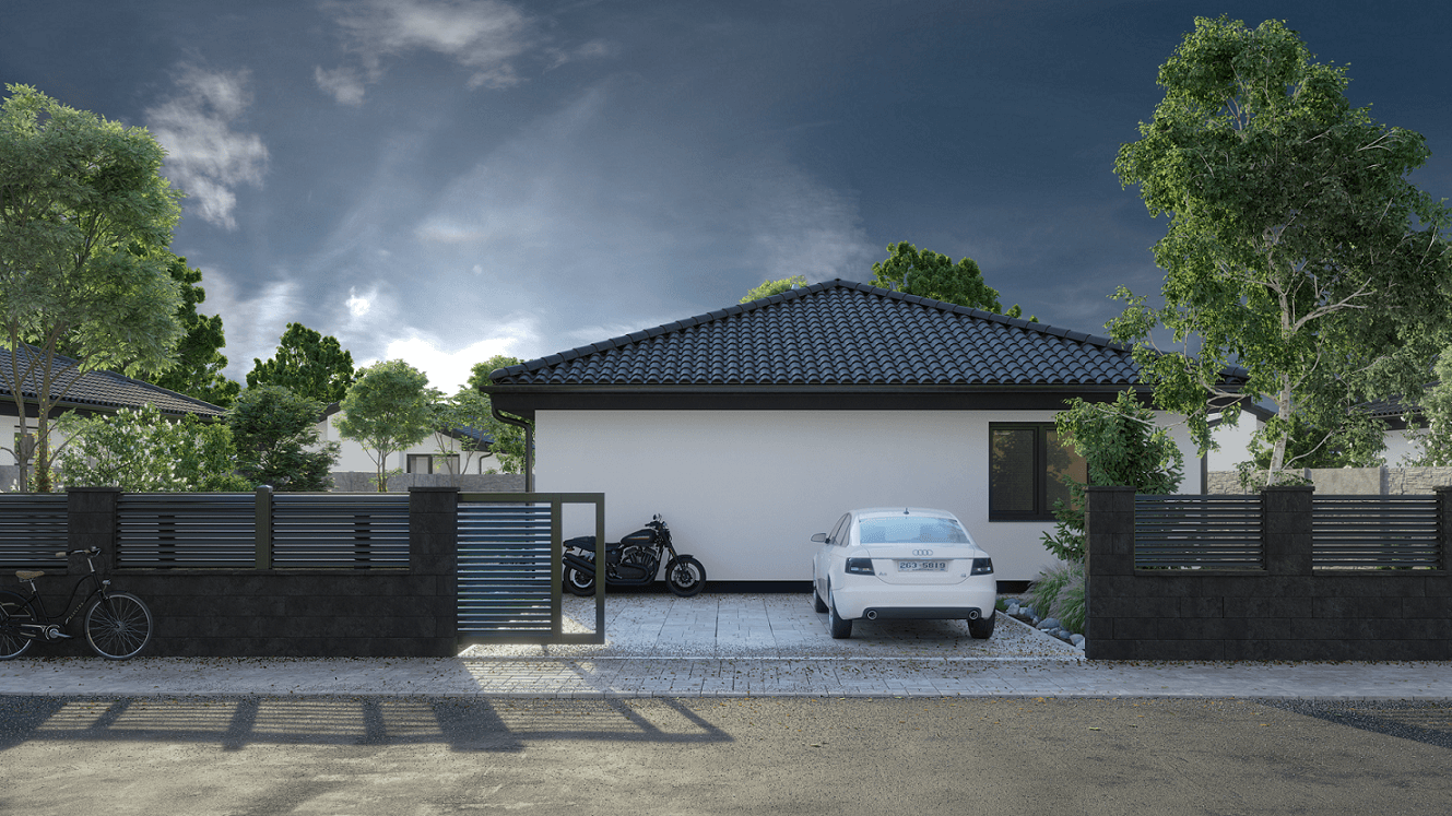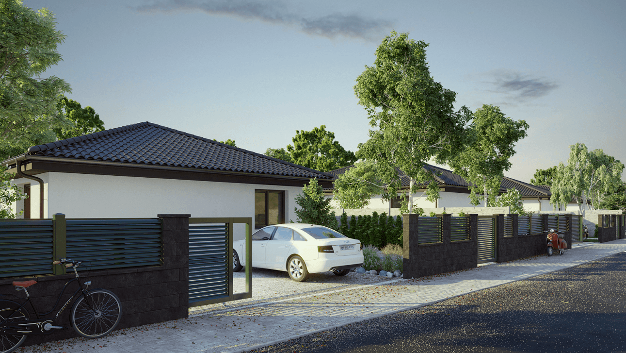 - dokončenú fasádu (bielo-sivú farebnú kombináciu)