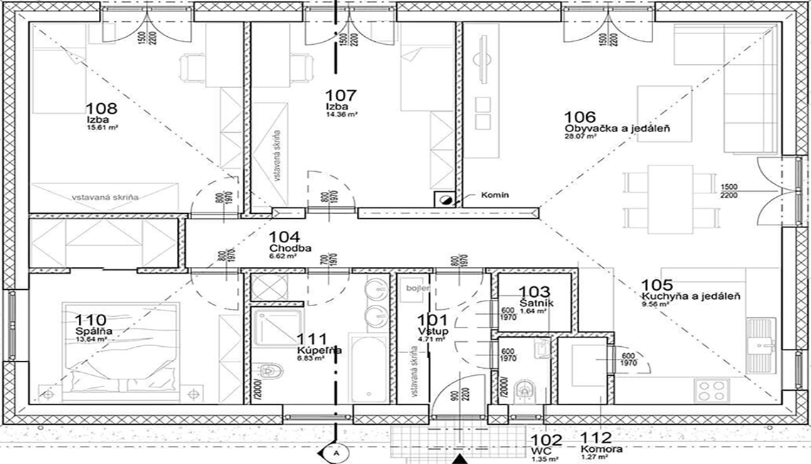 - obvodový plášť a nosné priečky: brúsená tehla TermoBRIK 24 cm